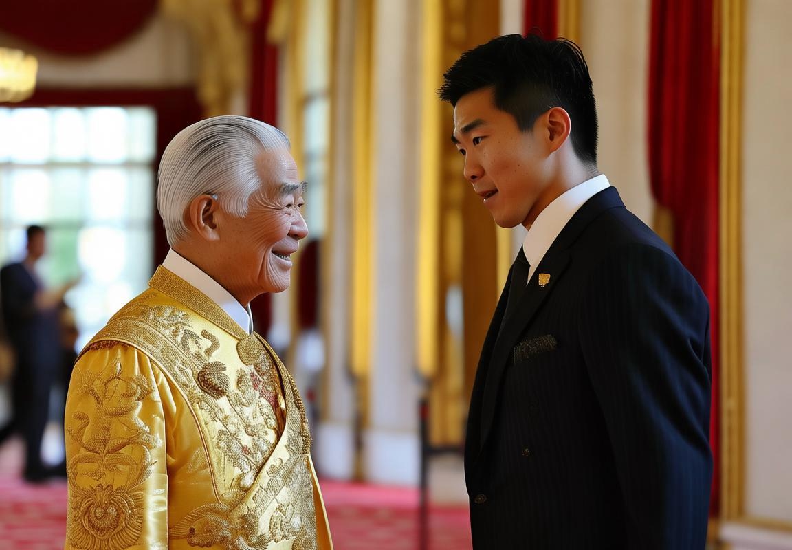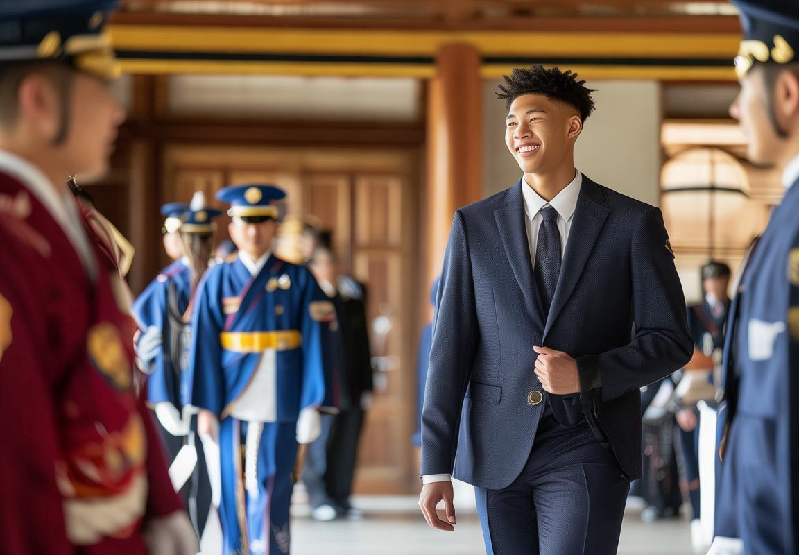 皇居的广场上,身着传统和服的侍卫肃立两旁,他们目光坚定,等待着迎接尊贵的客人。八村塁身着整洁的西装,面带微笑,步履稳健地走向了天皇陛下。这一刻,他的心中充满了敬畏与自豪。